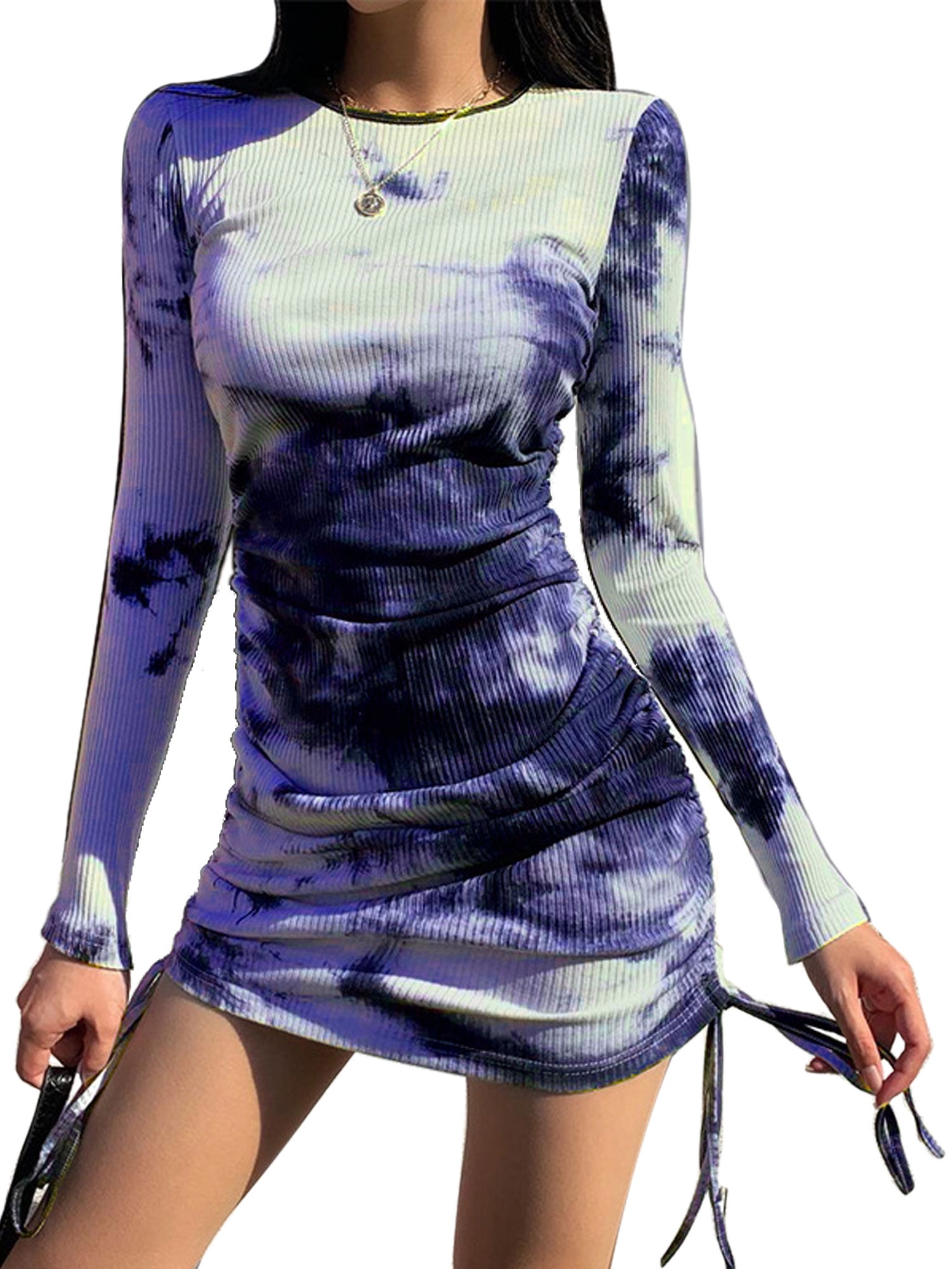 Buy Women S Tie Dye Sexy Bodycon Dress Long Sleeve Ruched Drawstring Night Out Club Party Mini Dresses Online In Germany B08cgl9lht