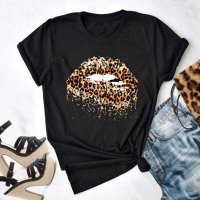 Fashion Women Dripping Leopard Lips T Shirt Funny Summer Graphic 90s Tees Tops Ebay